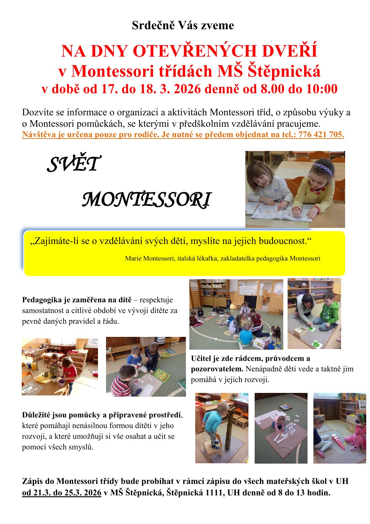 POZVÁNKA NA KURZ MONTESSORI S DR. EVOU ŠTARKOVOU